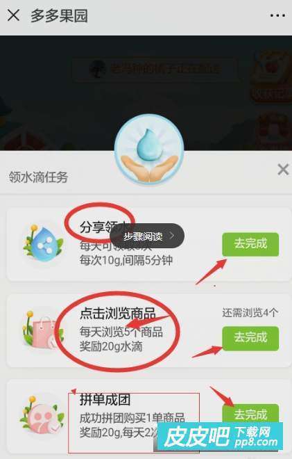 还有如果你的好友很多的话,而且级别也高,就可以去偷他们的水滴,哈哈,这个就像以前的种菜游戏一样,偷菜,现在是偷水,那个也来的多,条件是你的好友要多。当然你去朋友的果园对她也有帮助的,可以给她加水的,所以这种偷还算文明吧。
