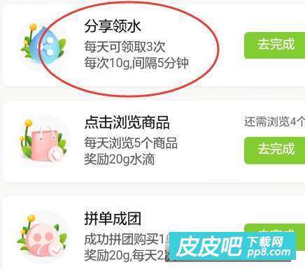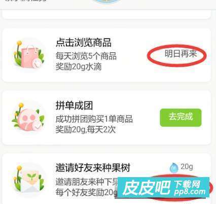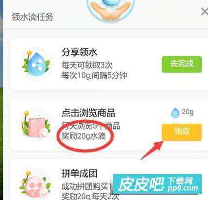 你登陆拼多多,然后去游览五件商品,要打开商品才能算一个,所以要打开五件商品,你算完成了,然后得到了20g的量。这个是不需要买商品,只是每天只能一次,要有耐心,明天再来,积少成多嘛。