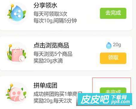 如果你想快速长出果子,而且你也正需要购买一些产品的话,你可以去用这一个方法,这个方法来得快,拼团成功一次有50g和20g的量。