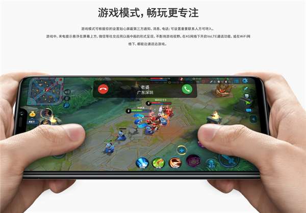 vivo Z1i加入了游戏模式,可根据用户设置屏蔽第三方通知。也可设置重要联系人呼入。在游戏中,来电提示悬浮在屏幕上方,微信等社交应用以画中画形式呈现,不影响游戏边界,而且vivo Z1i在4G网络下开启通话功能或在Wi-Fi网络下都能边通话边游戏。