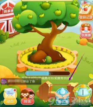 进入多多果园,后进入如下窗口,在此窗口下方与右上角都能看到相应的按钮,可点击查看里面的相关的功能与消息录提。