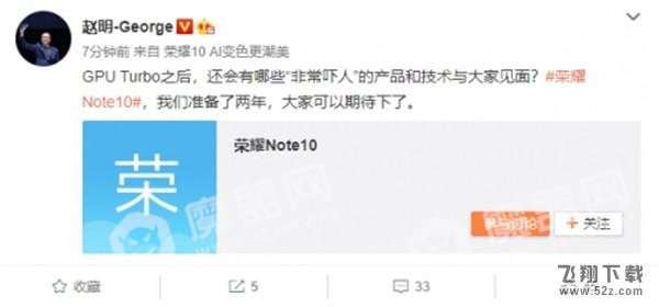 华为荣耀note10发布时间消息: