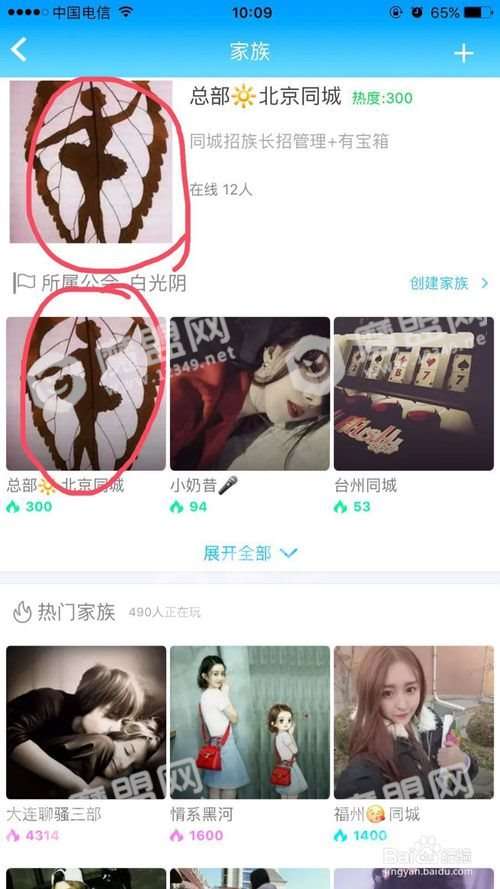 进入列表,第一个是自己的家族,还有好多别的家族,我就随便点了一个家族进去试试看