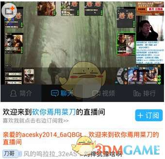 3、找到自己喜欢的直播节目以后,点击该节目就能进入到节目直播间了,在直播间中可以看到当前用户的一些聊天记录,因为我们是要订阅直播,所以如果你觉得这个直播间的节目你喜欢的话就可以点击“订阅”这个按钮了。