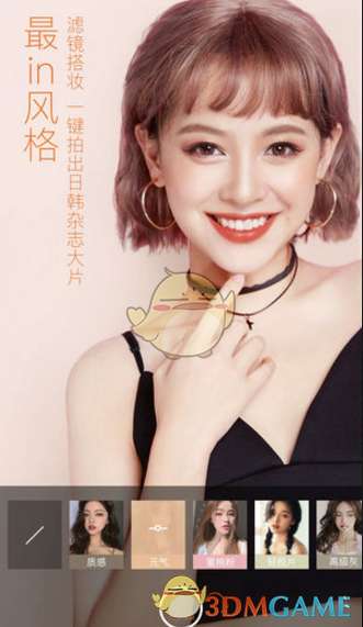 2、轻颜相机提供了“风格、美颜、滤镜”三个功能,选择你需要的修饰功能: (1)风格:质感、元气、蜜桃粉、胶片等 (2)美颜:磨皮、大眼、瘦脸、瘦鼻、尖下巴等 (3)滤镜:自然、清新、白皙、初雪等 3、还可以设置触屏拍摄、延时拍摄、闪光灯等。 4、你还可以进入相机设置,选择自动保存拍摄好的图片还是手动保存,也可以选在是否要在照片上留下水印等。