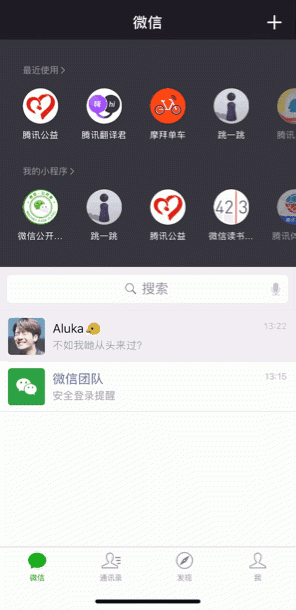 为了让用户更方便地使用小程序,微信在最新版客户端中,对小程序任务栏进行了升级。用户可以通过下拉的动作,拉出任务栏,打开最近使用过的小程序和「我的小程序」,也可以直接进入列表。