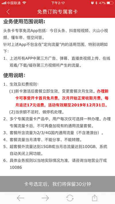 头条爽卡资费: