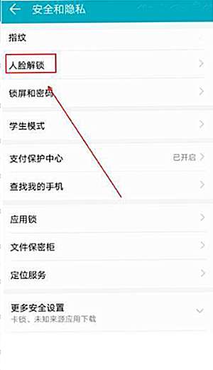 3、点击进入【人脸解锁】选项。