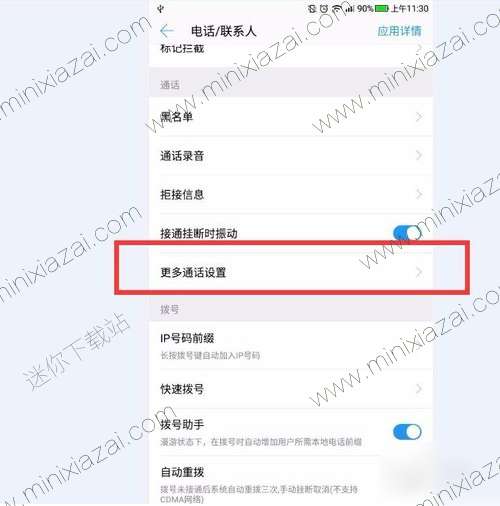 3在设置的详情里面,我们往下翻找,找到并点击“更多通话设置”