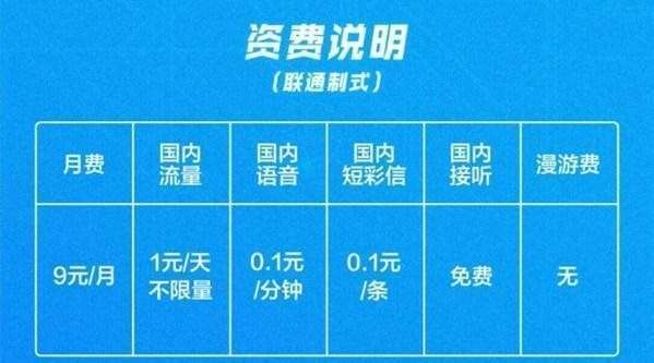 小米吃到饱无限流量大王卡月租9元19元流量1元/天不限量1元1G/天通话0.1元0.1元福利包无可选每月1G流量或100分钟通话,腾讯系APP免流短/彩信0.1元/条0.1元/条流量限制
