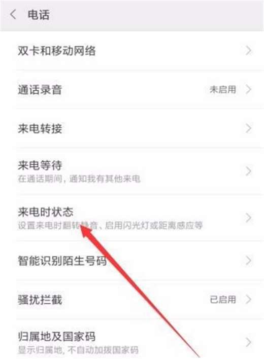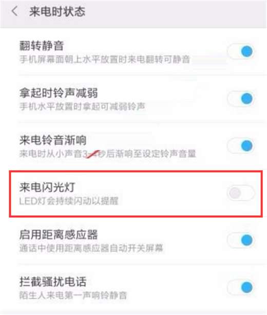 第五步:在手机“来电时状态”我们会找到【来电闪光灯】选项,直接打开就可以了,这样我们在收到来电的时候手机就会闪起来了。