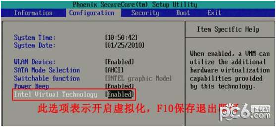(3)将该选项将变为Enabled,再按F10键保存并退出BIOS,即可开启VT功能。