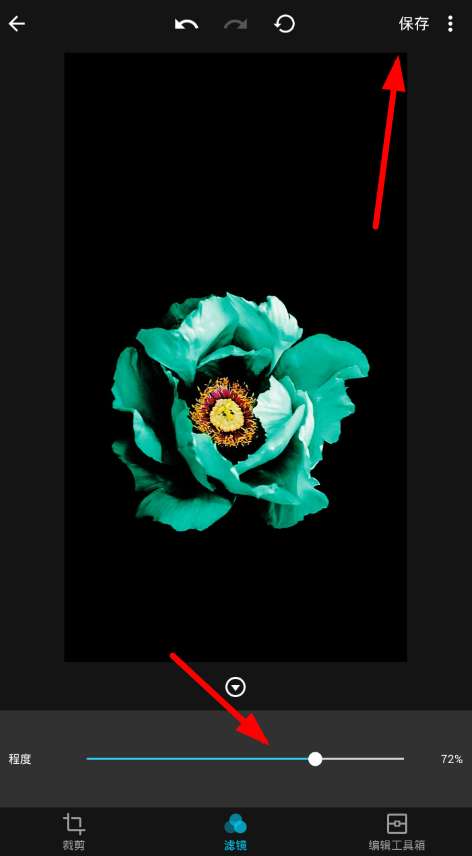 3、如此一来,大家还可以通过进度条控制反差色的强弱,通过右上角按钮点击进行保存,完成反差色滤镜的设置。