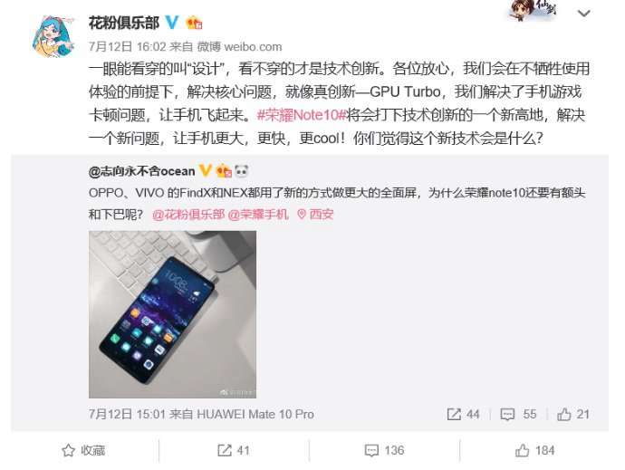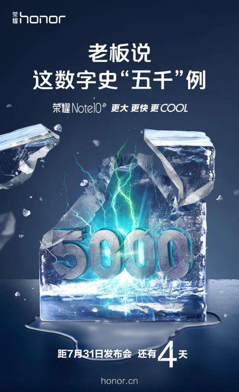 爆料一:老版说这数字史“五千”例,荣耀Note10更大 更快 更COOL