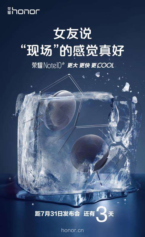 荣耀Note10什么时候发布?7月26日,荣耀发布了首张荣耀Note10发布会倒计时海报,确认Note10将于7月31日发布。因此,荣耀Note10发布时间锁定为7月31日板上钉钉了。
