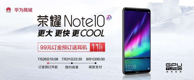 从7月26日开始,华为商城就已经开放荣耀Note10预售了,不用抢还送耳机,感兴趣的花粉不妨考虑下。