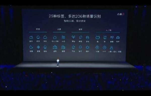 小米8的AI支持25种标签,206种场景识别