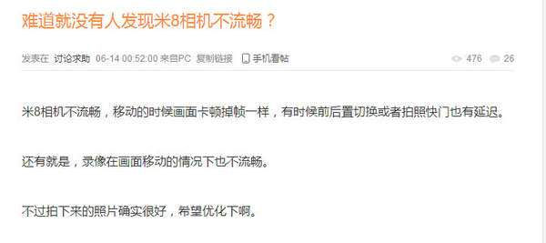 看来小米8这次在相机上真的出现失误了啊,虽然拍照真的很好看。但是也要注意其他方面的问题,强化一下用户体验,相信小米会更好的。