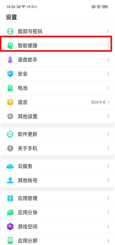 1、在设置里面,找到【智能便捷】,点击打开。