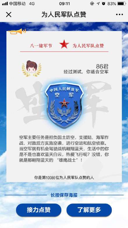 大家在微博上就可以找到了,为人民军队点赞地址入口:点击进入