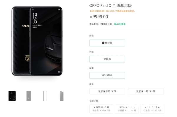 6月29日的Find X发布会上,OPPO特别推出了一款Find X兰博基尼版,8月2日上午,OPPO官方宣布OPPO Find X兰博基尼版官网开启预约,将在8月10日上午10点开售,售价9999元。
